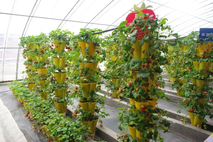 草莓立柱式栽培模式。