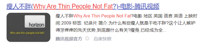BBC专门拍摄了纪录片探讨瘦人不胖