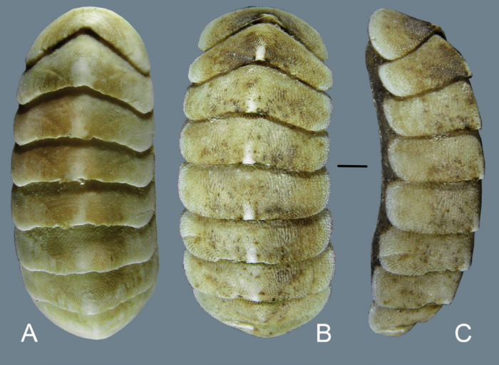 斯氏隐板石鳖的背板已经退化,埋于体内。这也是它们名为“隐板”的原因。