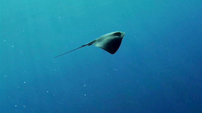 在远洋中上层海域自在游弋的紫色翼魟/Pteroplatytrygon violacea,尽管身为魟类,但它们在演化上却在向鲼类靠拢。©intotheblue.it