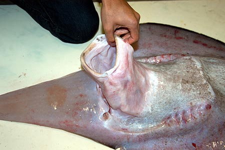 除了六对鳃裂,六鳃魟还有极具延展性的颌骨 ©ealmonstrosities