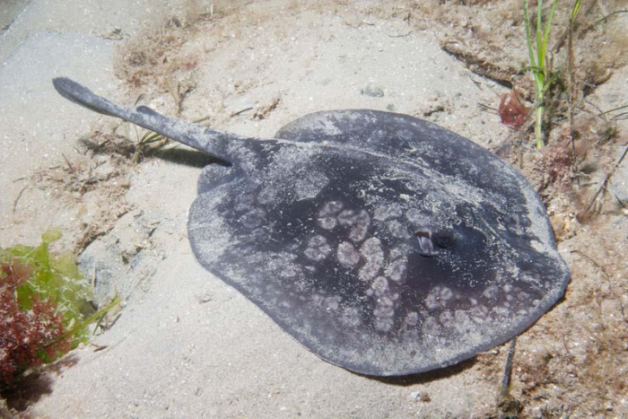 鲼科的代表物种——隼鲼/Myliobatis aquila,其头鳍呈圆形,同样可以起到挖掘猎物的作用。© AILERONS