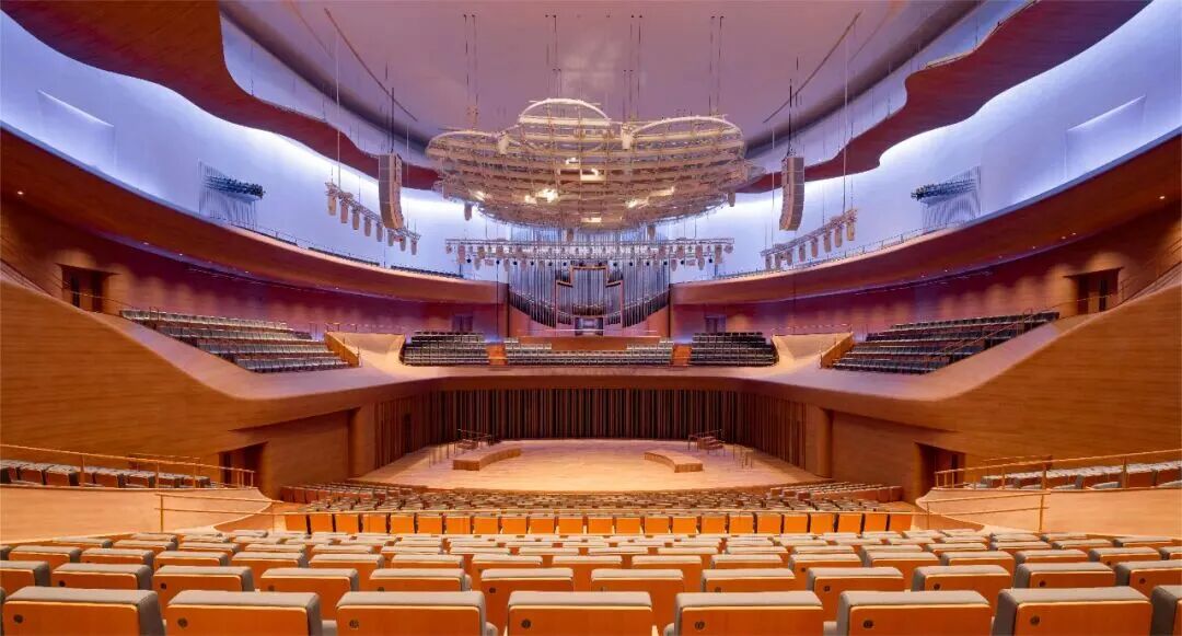 走进1500座的音乐厅,你会被2.55秒的混响时间震撼——这比柏林爱乐音乐厅还多出0.3秒,意味着音符能在空气中停留更久。148支音响组成的沉浸式系统藏在波浪形的天花板里,当国家大剧院的管弦乐奏响《运河随想曲》,乐声会沿着1:0.618的黄金比例曲面均匀扩散,最后一排观众也能听见低音提琴的音色细节。更妙的是,歌剧院的穹顶采用“双曲面声反射体”,任何微小声都会被巧妙吸收,本底噪声低至NR8——相当于树叶飘落的声音。