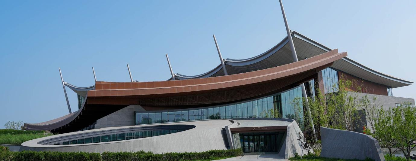 从空中俯瞰北京大运河博物馆,5片高低错落的船帆屋顶十分醒目,好似正在起航的漕船,充满动感与力量。最大的那片船帆跨度达80米,由128根预应力钢索稳稳吊起,即便是面对12级台风的肆虐,也能屹立不倒,为馆内的文物撑起坚固的保护伞。