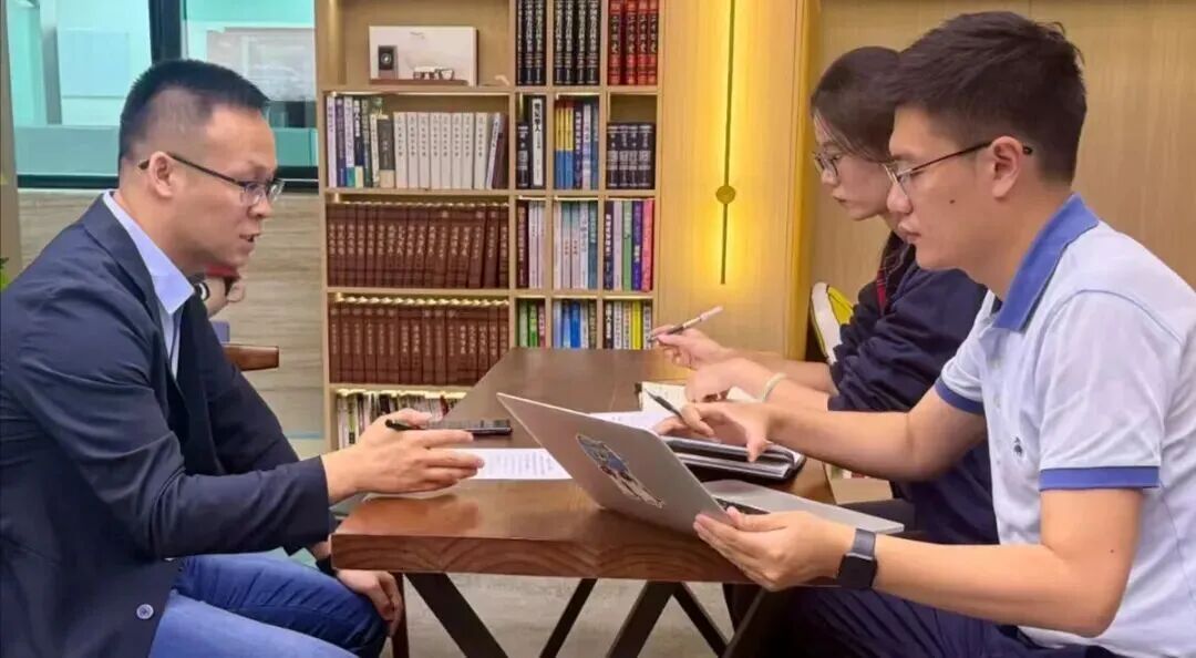 记者刘早(右一)、王晶(右二)在新疆电力交易中心有限公司采访。摄影 / 马元