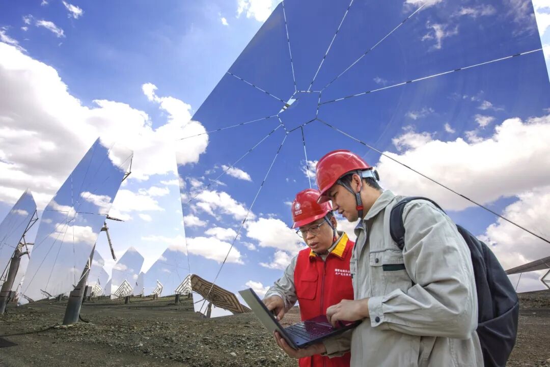 新疆电科院工作人员在哈密淖毛湖镇熔盐塔式50兆瓦光热发电站查看实验环境。摄影 / 吴静