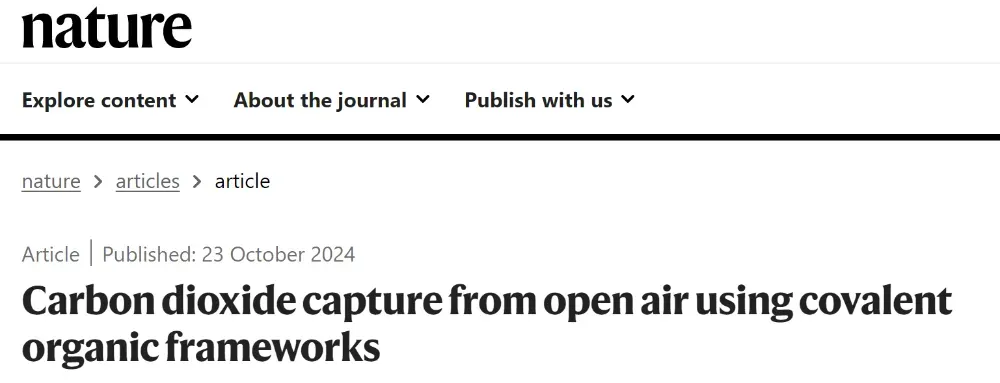 [1]Zhou Z , Ma T , Zhang H ,et al. Carbon dioxide capture from open air using covalent organic frameworks[J]. Nature, 2024.