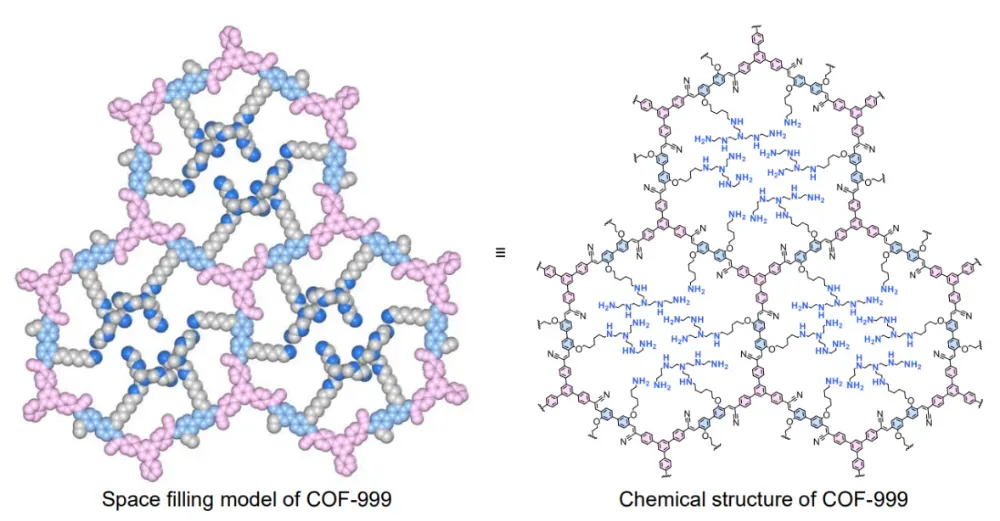 COF-999 的空间填充模型和化学结构图。来源:参考文献[1]