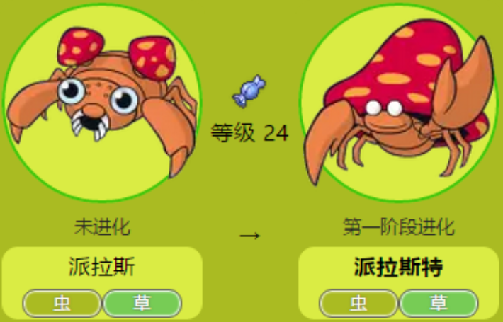 派拉斯整体多为橘色,有三对脚,最前面的一对较大且足尖锋利,神奇宝贝官网介绍它是“类似蝉的幼虫的”,它看上去的确像个蛹宝宝。