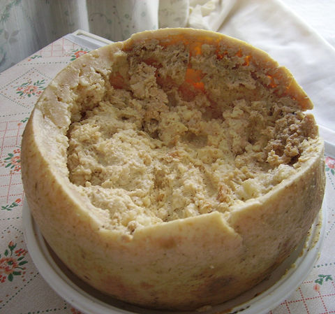 在制作这种奶酪时,需要招引酪蝇在山羊奶酪上产卵,虫卵孵化后直接吃奶酪长大成为活蹦乱跳的蛆虫,蛆虫的进食和消化行为能让奶酪发酵软化,增添风味。