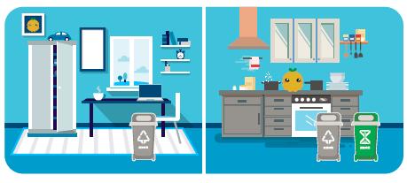 有的小伙伴表示,这么多内容,我实在搞不清、记不住怎么办? 居家简单记住“两桶一袋”就行!准备两个垃圾桶,一个放厨余垃圾,一个放其他垃圾,而类似纸张、塑料瓶、易拉罐等可回收物单独装在一个袋子里,至于节能灯、水银血压计、蓄电池等有害垃圾,因为一般家庭产生量都不大,可不在家中单独设置垃圾桶,及时投放到社区的有害垃圾收集容器即可。