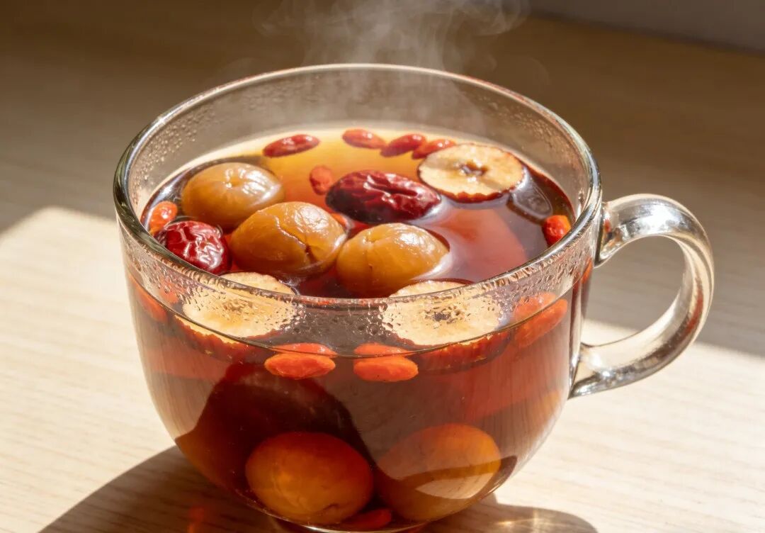 冬至,也不妨试试这款代茶饮——桂圆红枣枸杞茶,适合冬天气血不足、手脚冰凉的人群。