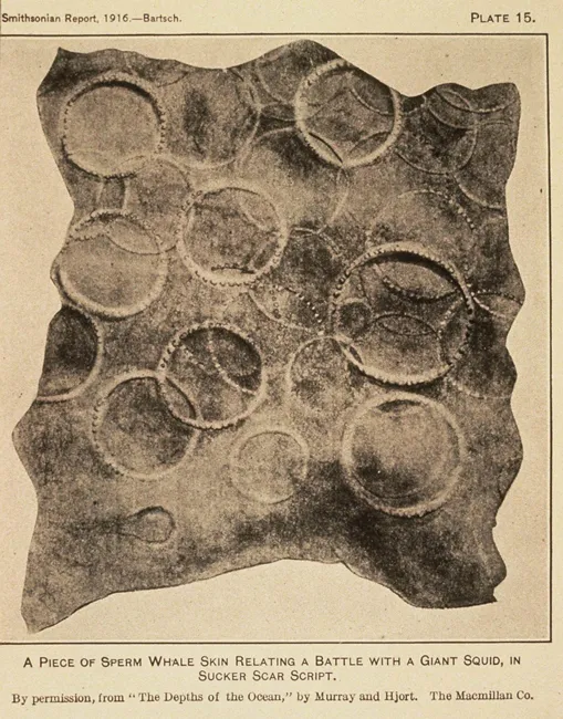 [8] https://www.facebook.com/OceanPortal. (2023, May 11). Giant Squid Sucker Marks. Retrieved April 23, 2025, from Smithsonian Ocean website: https://ocean.si.edu/ocean-life/invertebrates/giant-squid-sucker-marks#:~:text=Many%20sperm%20whales%20stranded%20on,that%20they%20overlap%20each%20other.