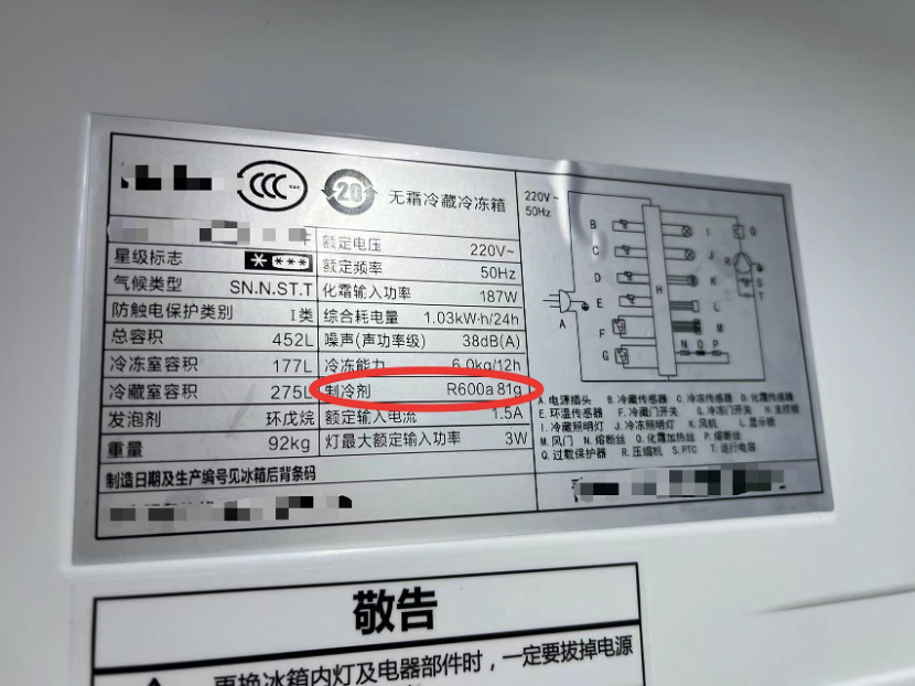 首先,你可以看看冰箱背后的压缩机,上面写了制冷剂的型号。如果写的是R32,也就是二氟甲烷,那你就需要留个心眼。