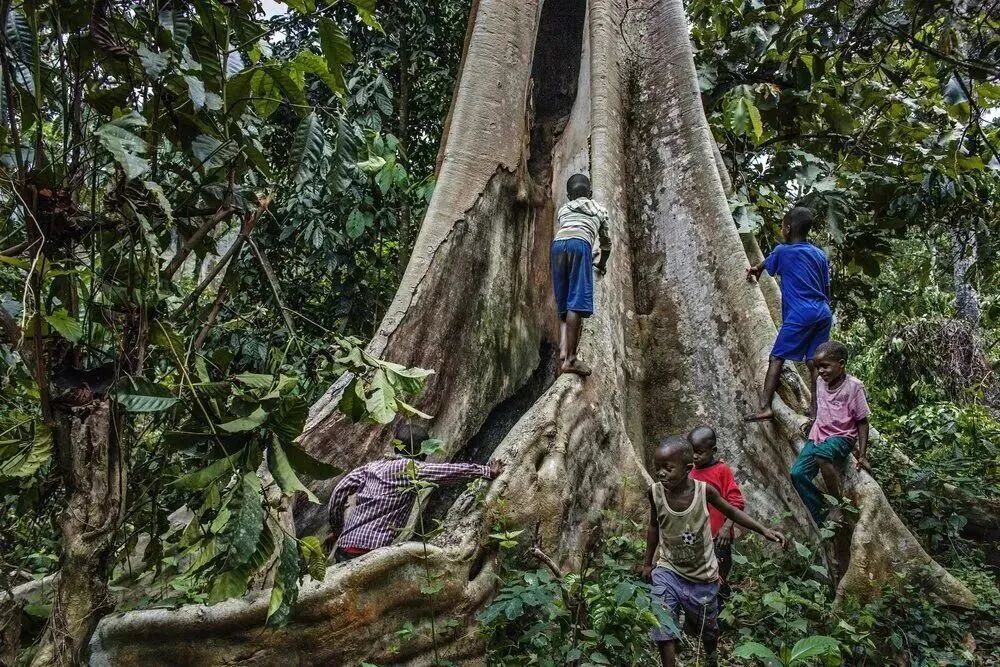 ▲孩子们玩耍的大树