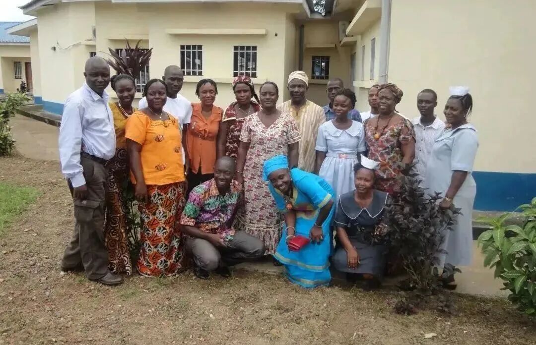 ▲胡玛尔医生(左一)和护士长「姆巴卢姨妈」(右一)团队合影