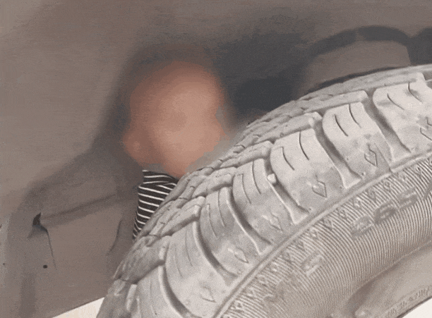 后怕!车轮内侧竟藏了个娃……
