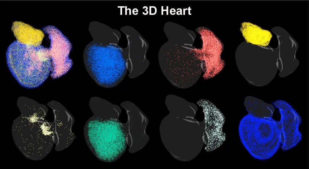 这就像给心脏做了一个动态的“3D基因地图”,不仅能显示损伤修复过程中有哪些细胞和基因活跃或沉默,也能精确定位它们发生这些变化的时间和位置。