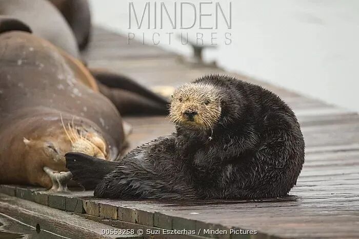 替加州海狮挡枪的海獭丨Suzi Eszterhas / mindenpictures