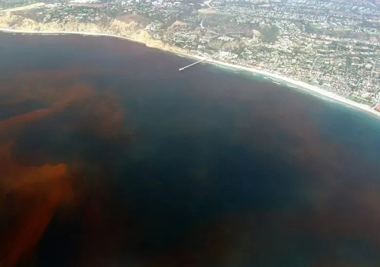 加州某处海湾,红藻爆发带来了红色的“潮汐”丨P. Alejandro Díaz / wikimedia