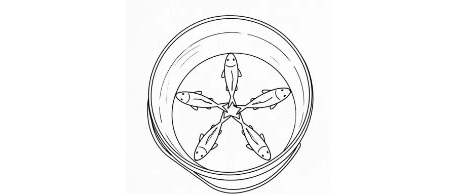 但是五条大鱼的身体总长度超过了水桶周长,无法同时平铺贴壁。极度的恐惧要求接触物理边界,空间的拥挤又要求相互排斥,星型辐射排列是大脑处理这两个冲突指令后得出的静态妥协方案。