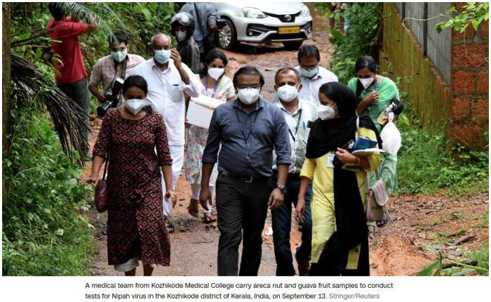 在印度,医疗队携带样本进行尼帕病毒检测。 图片来源:中国新闻网