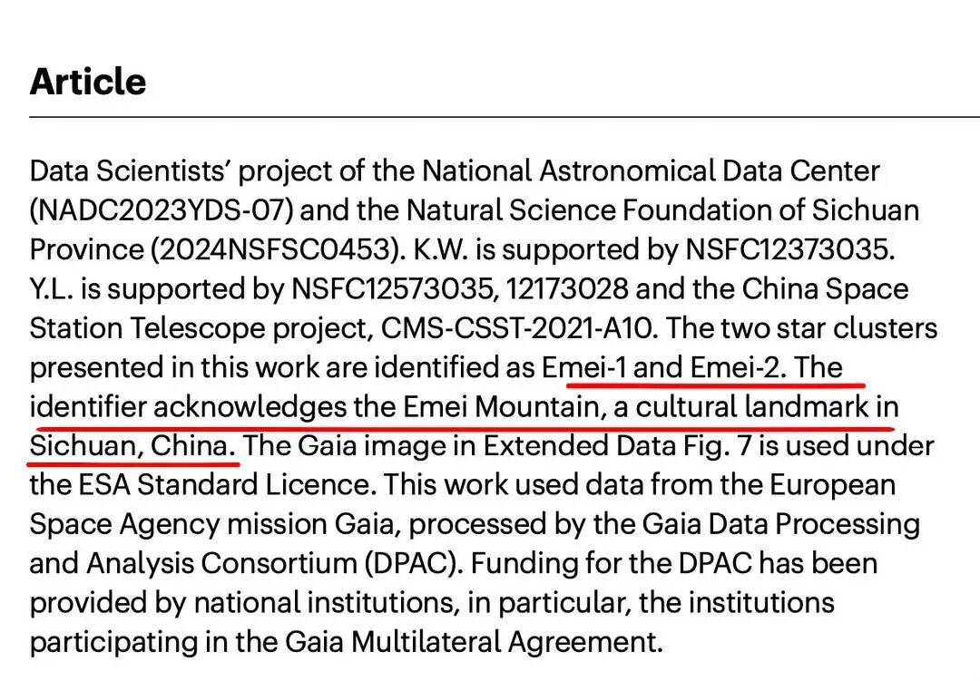 西华师范大学何治宏团队的研究论文发表于《自然 - 天文》,其首次在银河系外围发现命名为 “峨眉” 的双星团,为银河系吸积外部气体维持恒星形成的理论提供了首个直接观测证据。这对蓝色 “婴儿” 星团诞生于 1100 万年前,由两团高速碰撞的气体催生,其运动特征与周边高速云高度契合,成为定位高速云的天然 “路标”。团队通过多台望远镜的公开数据交叉分析,确定高速云位于银河系外围 4.5 万光年处,且双星团低金属丰度的特征也印证其源于银河系外。研究还推测,高速云最终会被银河系 “吞噬”,而峨眉双星团或会脱离并绕银河运行,峨眉山金顶是观测这对星团的最佳地点之一。