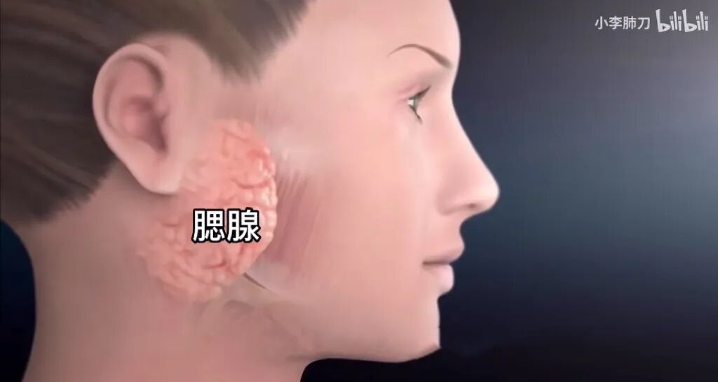 腮腺是人体最大的唾液腺,左右各一个,就在我们耳朵的前下方。