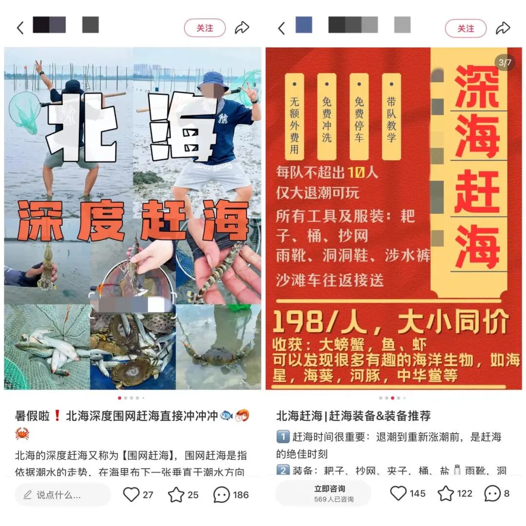 地笼赶海游客体验 | 网络平台截图