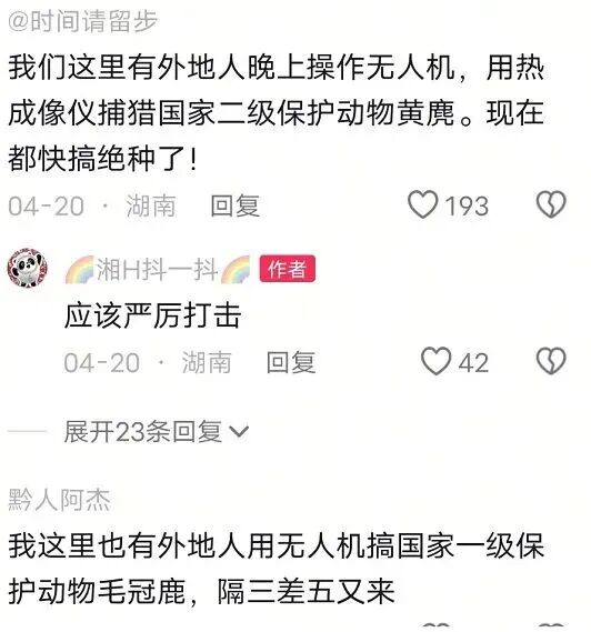 实际上已经有不少人表示,已经存在许多使用无人机捕猎“三有”和国家一级、二级保护动物的不法行为,无人机让不法分子的活动变得更加肆无忌惮,其危害性是巨大的。