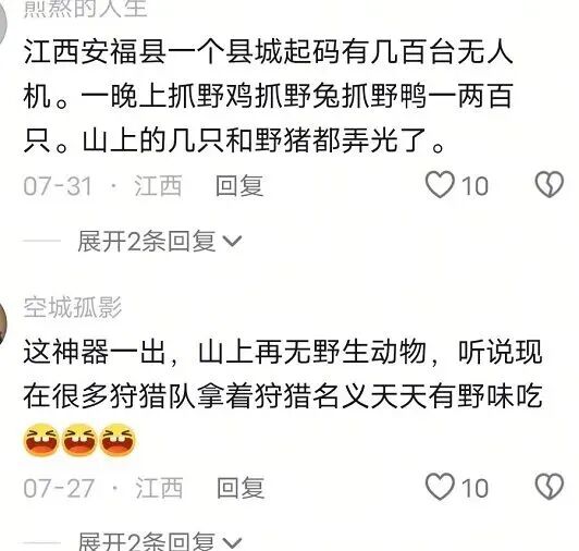 开头处提到的大同新闻报道中,山西森林分局刑侦大队的大队长表示,无人机坠箭打猎“在当地部分人群中,已经产生了恶劣的群仿效应”。而无人机坠箭这种危害性极大,法律监管又相当缺乏的打猎方法,快速传播的危险性更是不言而喻。