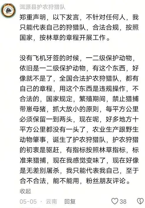这里南风窗记者提供的信息价值,不仅在于无人机坠箭的危险性,也在于让我们注意到,在这场流量狂欢里,“很多人逐渐忘记了捕猎野猪的真正目的”,打野猪的活动被娱乐化,很容易引起传播效仿。