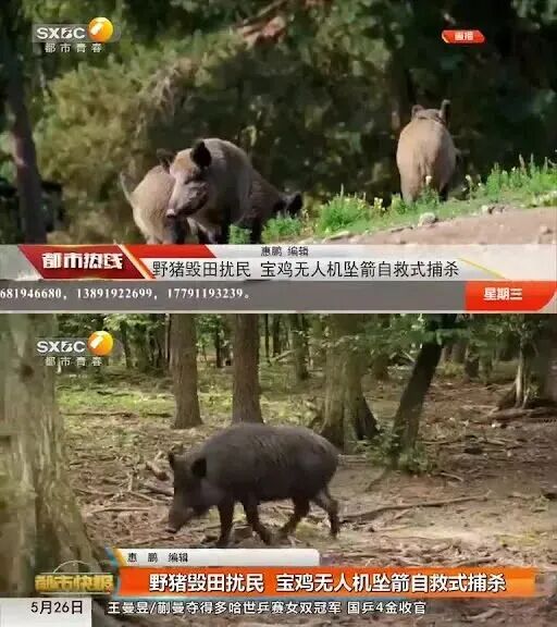 无人机坠箭引起官方关注并不是第一次。今年5月21日西西新闻报道,渭滨区林业局“利用搭载特制坠箭装置的无人机开展精准作业”,在5月20日捕杀了9头野猪。媒体对此事件的总结是:“此次集中处理行动为后续工作提供了示范,也为平衡生态保护与群众利益开辟了新路径”。