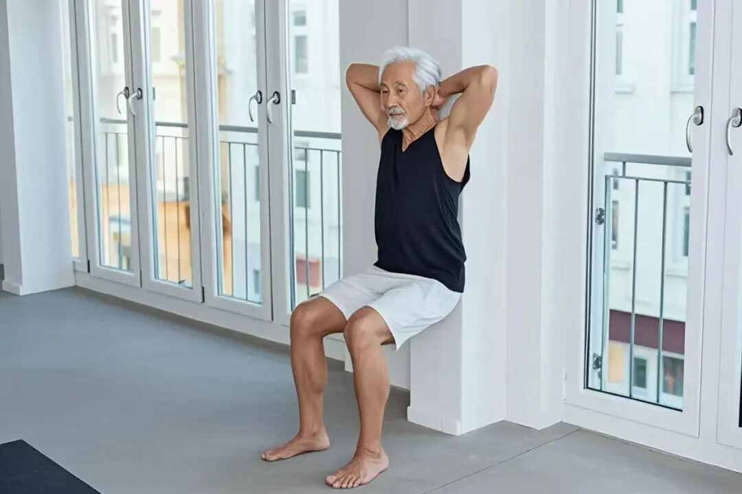 靠墙静蹲,努力坚持30秒,酸了起来快走1分钟左右,再来一次30秒静蹲,一天做2组即可,每组4次,加起来每天耗时5分钟左右。