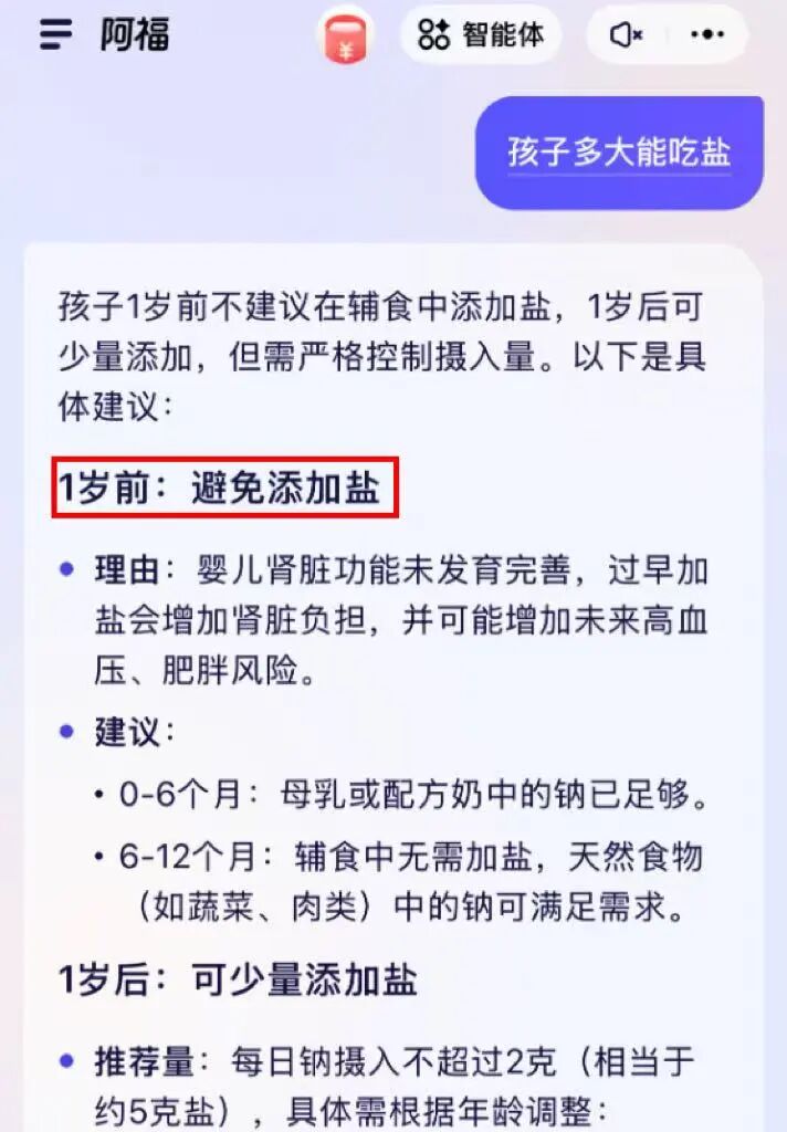 初步体验下来,关于一些简单的健康育儿问题,阿福的回答还是很靠谱的,能根据文献提供一些可参考的「标准答案」 👍