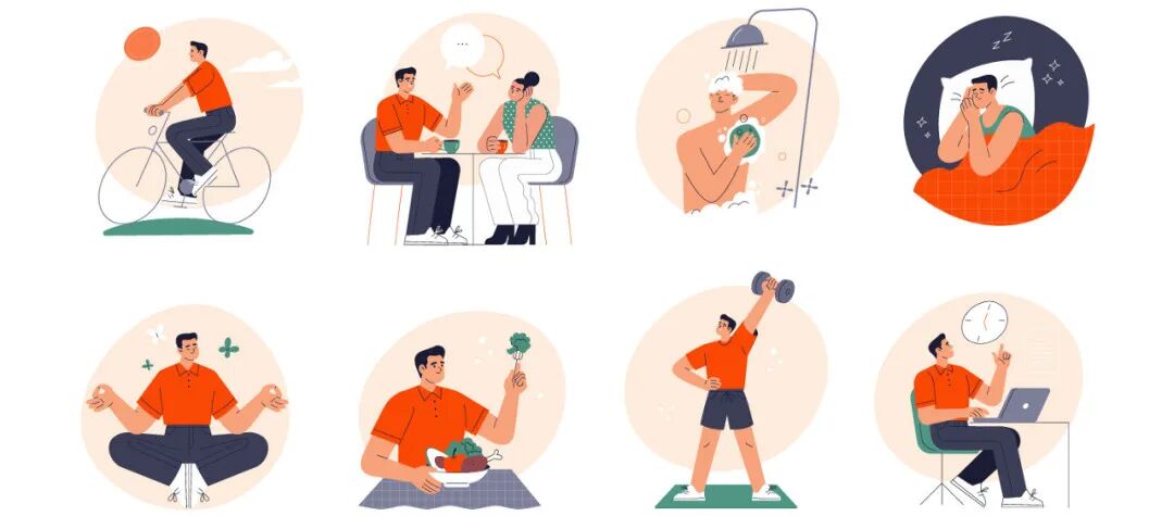 此外,我们要每年进行健康体检,了解自己的身体状况,在这个过程中要明白我们的检查指标哪些是正常的、哪些是异常的,异常的指标与正常值相差多少,以及如何进行改善……在体检后,专业医生会对我们的健康状况进行综合评估,给出改善建议,此时我们应听从医生的建议,改变生活方式、积极治疗疾病。在高度紧张、繁忙的工作状态下,我们一定要注意心理调适,维护身心健康。