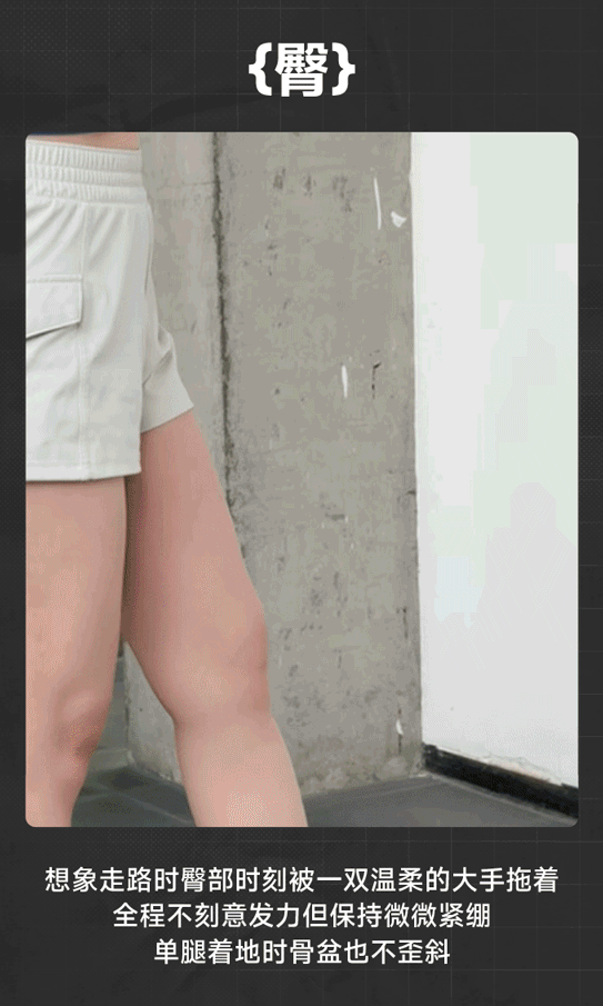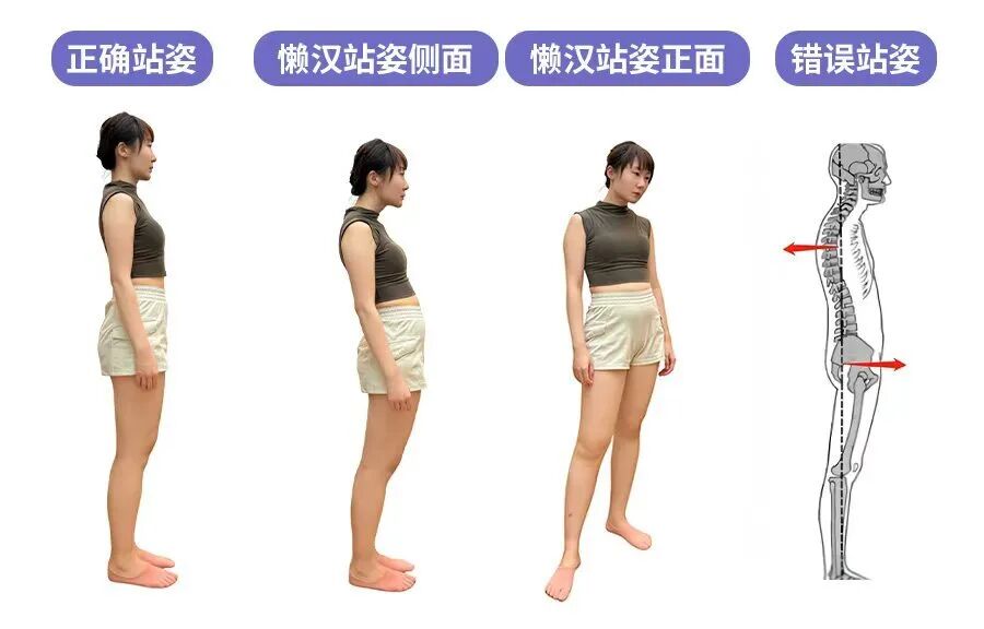 站立或走路时条件反射式「夹屁股、腰往前顶」,形成骨盆前移 + 相对后倾的懒汉姿势👇