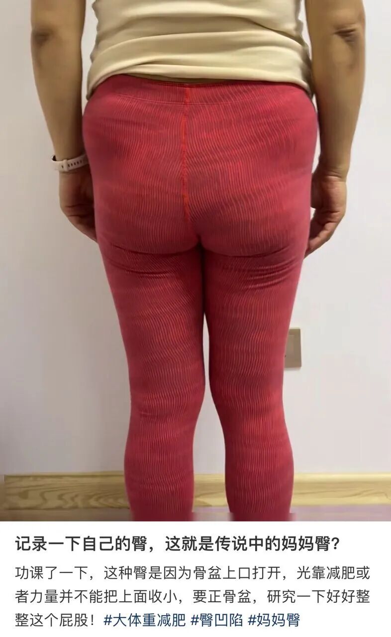 网上对此众多纷纭,有人说这是生孩子后遗症,称此为「妈妈臀」;有人说是胖的;