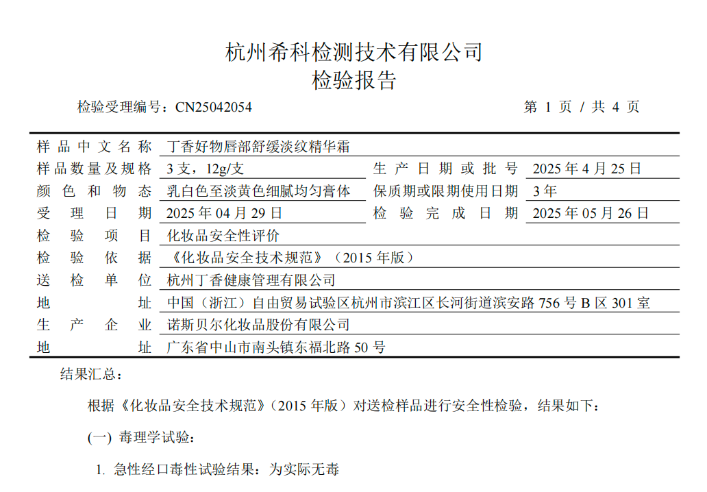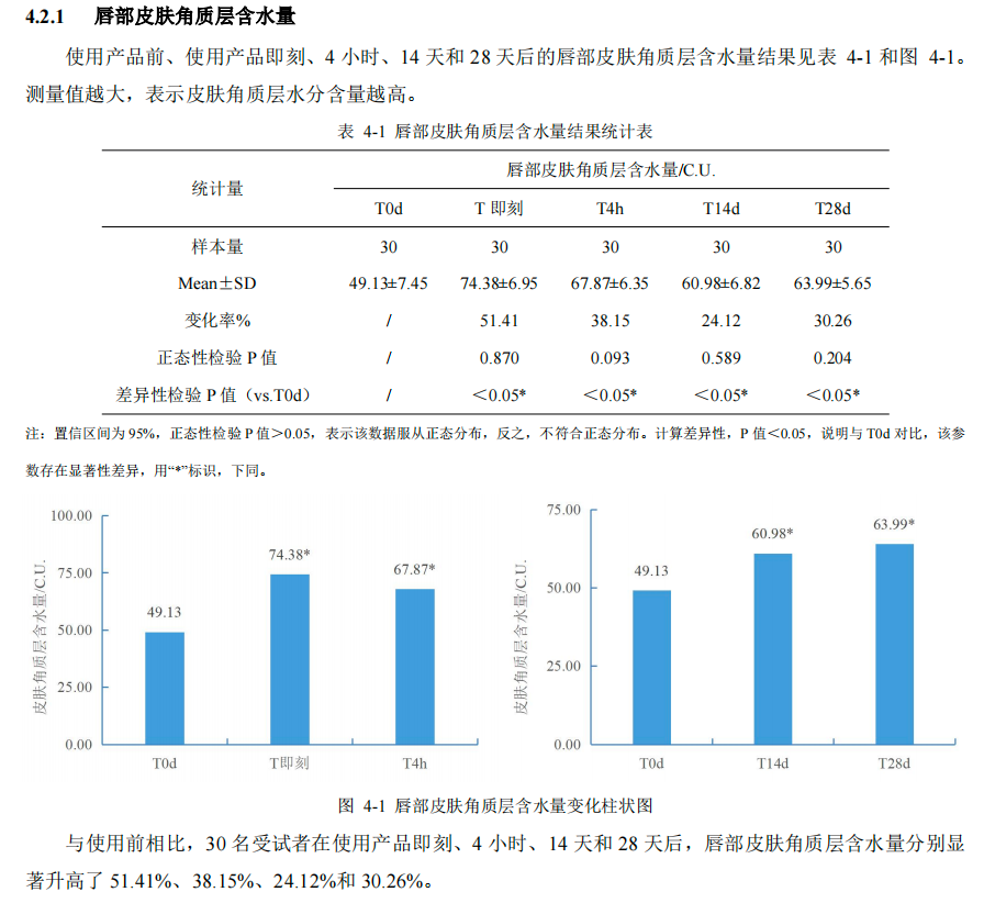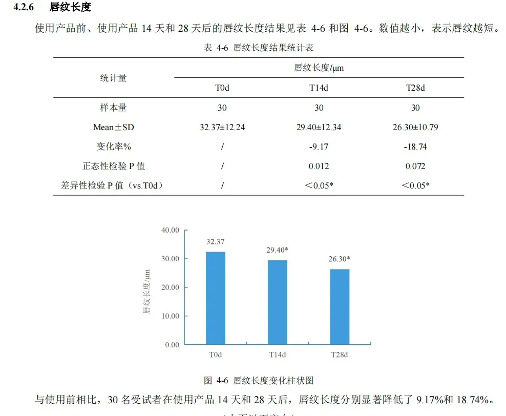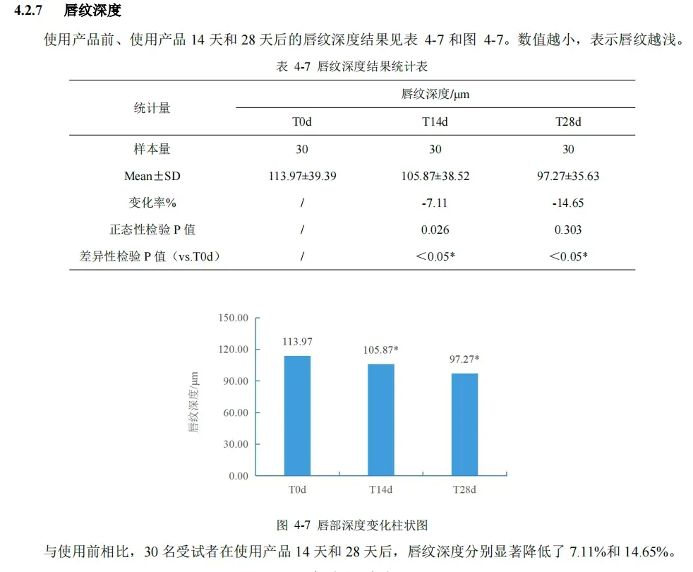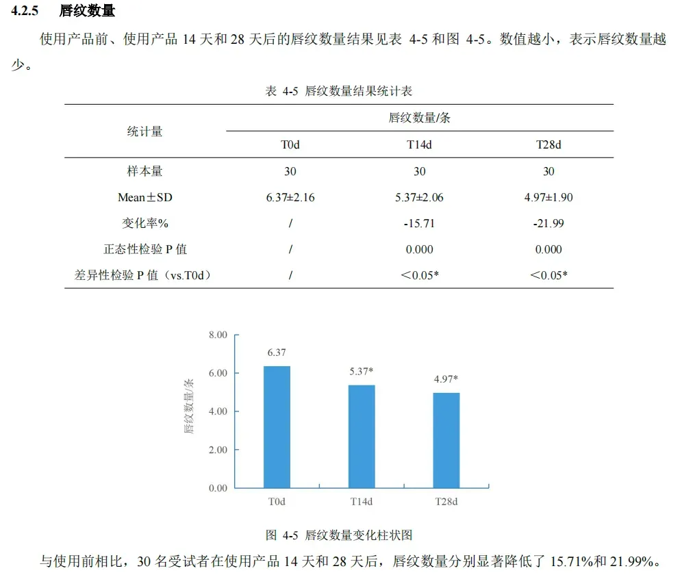 实力怎么样,直接看报告。人体临床功效实验报告显示,使用唇精华乳 4 周后,与使用前相比: